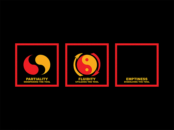 在抵達原初 的自由階段,所有的方法都成為他的方法,而不拘束於其一。同理,習武者可以運用任何技巧和方式,以實現其目的。效率是檢驗真理的唯一標準。